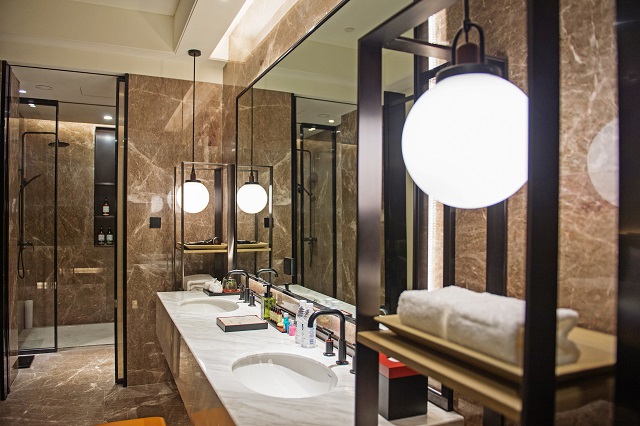 贵宾谧境 | 贵宾楼房型 软装调和东方风骨与现代奢华 空间流淌着关爱、自在、时尚与文艺的韵律。我们执着于无声的呵护:绿色建材筑底,水性漆描绘安全底色。使用麻丝背景床板,无胶无醛,是贴近肌肤的美学风物。中央新风拂去PM2.5的侵扰,英国古轮床垫托起深眠梦境,双面盆设计的巧思,让晨昏的仪式感从容舒展。
