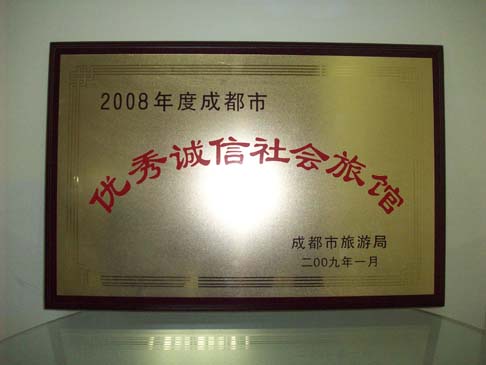 在金牛区旅游局的关心支持下,2009年2月27日,酒店在成都市旅游局组织召开的“成都市旅游行业管理工作会议”中荣获市旅游局颁发的“四川省成都市2008年度优秀诚信社会旅馆”荣誉称号(非星级酒店奖励称号),酒店作为第一位优秀诚信社会旅馆代表上台领取奖牌,这表示市旅游局对酒店硬件软件的肯定,对于酒店正在进行的申星创绿启到了极大的推动作用。