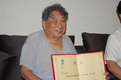 2011年9月1日,酒店总经理黄总、行政总监一行,前往吴老先生家中,为其颁发了酒店金沙文化导师的聘书。从这一刻开始,吴老先生正式被酒店特聘为“润邦国际酒店金沙文化导师”。