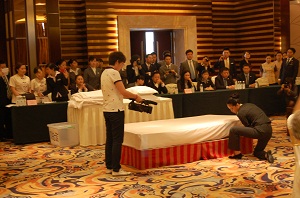 2013年4月27日, 2013年成都市旅游饭店服务技能大赛金牛区选拔赛在润邦国际酒店正式落下帷幕。此次比赛由金牛区文化旅游和体育局牵头,润邦国际酒店赞助,国家级旅游星级饭店评定检查员、四川盛嘉饭店管理有限公司董事长鲍小伟担任本次比赛评委。本次比赛分中、西餐宴会摆台、中式铺床、鸡尾酒调制4个项目。经过激烈比赛,共有12人获得参加成都市旅游饭店服务技能大赛资格,参赛选手通过仪容仪表展示、现场操作等方式向评委展示了自己的技能。 各参赛酒店也希望以此为契机,进一步提升优质服务、加强员工的服务意识、服务形象和基础服务水平。在大赛的点评上,评委鲍小伟老师表示:员工服务技能比赛,展现了酒店优质的服务和员工的专业技能、团队精神,并对本次比赛的项目做了细致的点评与指导,相信对此次比赛的选手有很大帮助和提高。