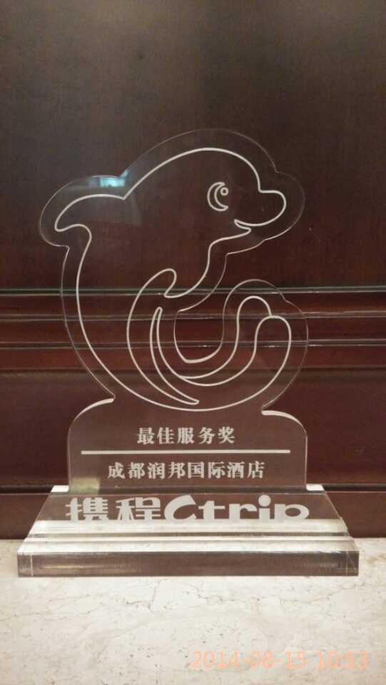 2014年8月15日,润邦国际酒店有幸获得了携程颁发的“最佳服务奖”(奖杯见下图),酒店总经理黄飚先生参加了此次颁奖活动。能获得此荣誉润邦国际酒店倍感荣幸,这不仅是对我们工作的肯定和鞭策,也是对润邦人今后工作的一种鼓励,正所谓一份耕耘一份收获,我们相信能表达润邦人的心情只有三个词:感谢,自豪,行动!同时,在未来的工作中,我们必将更加努力,这是我们的承诺,也是我们的决心!