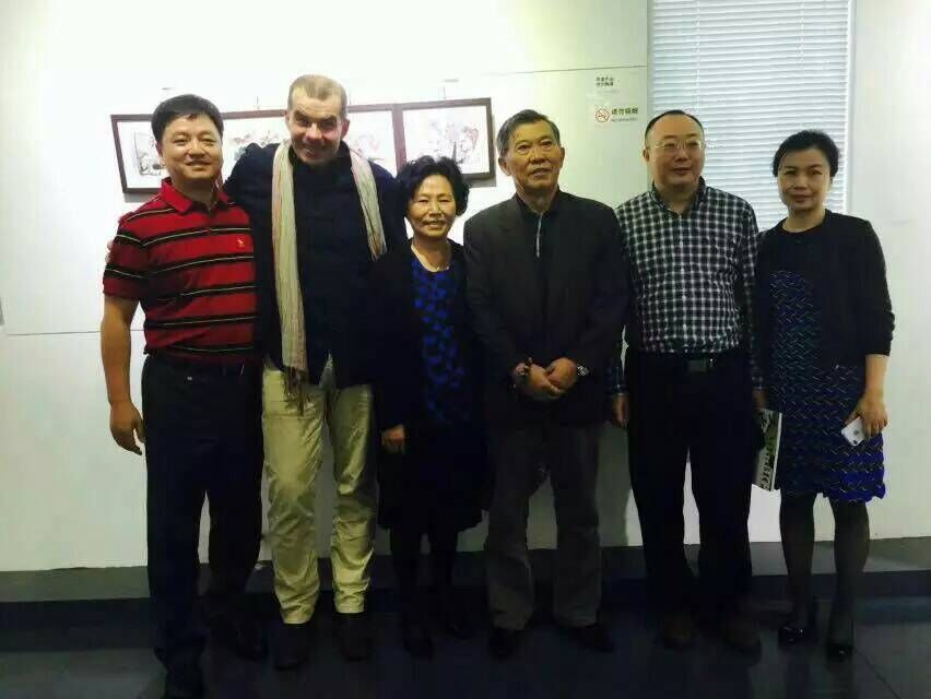 润邦国际酒店总经理黄飚先生(左一)开幕式现场与艺术家合影
