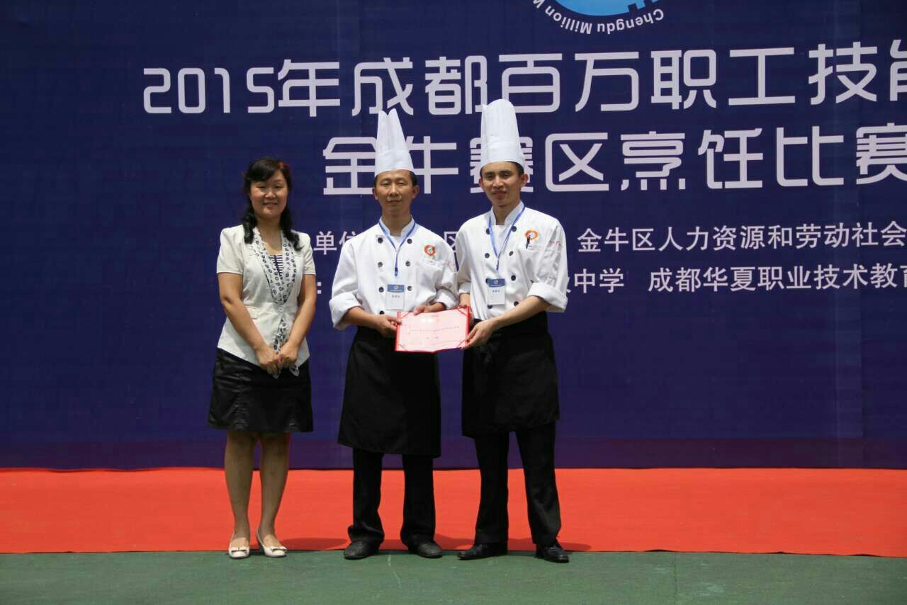 2015年5月13日,由金牛区总工会、成都市金牛区人力资源和社会保障局联合组织的“成都百万职工技能大赛金牛赛区烹饪比赛”在成都财贸职高成功举办。润邦国际酒店餐饮部派出了由谢廷江及刘军组成的代表队参加此次比赛。无论是组委会指定的“鱼香肉丝”,还是选手们自制的热菜“画中有画”以及凉菜“飞鸟和鱼”,从色香味方面均获得了裁判们的一致好评,融入酒店金沙主题文化的独特摆盘与造型更是让大家眼前一亮。经过激烈的角逐,我酒店代表队不负众望拔得头筹,荣获此次烹饪比赛第一名。 通过此次比赛,酒店两名厨师展示了他们出色的厨艺,为酒店争得了荣誉。酒店根据相关规定,在全店通报表扬并给予了物质奖励。同时,也希望今后还能通过这样的比赛,不断提升酒店业务技能水平,学习先进,增长经验,为宾客提供更加满意的产品。