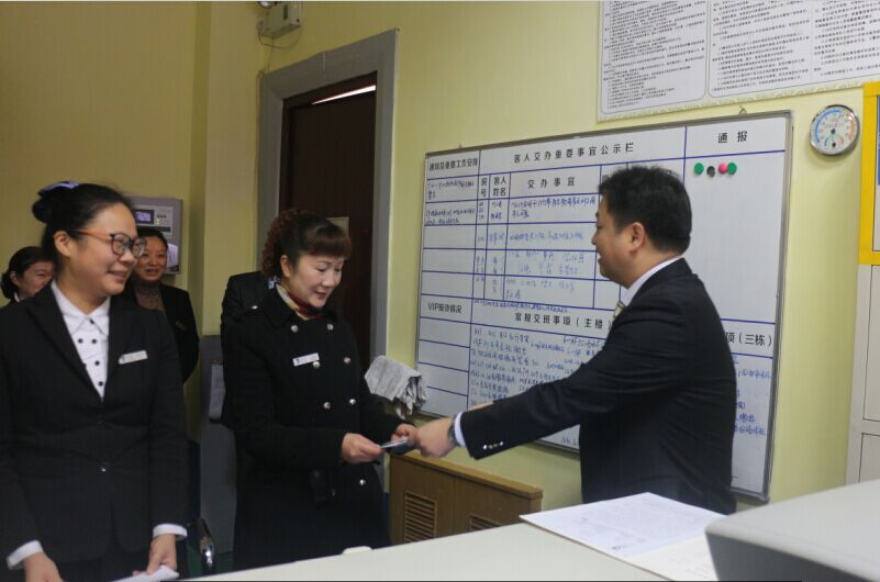酒店总经理黄飚先生为华玉兰送上现金奖励