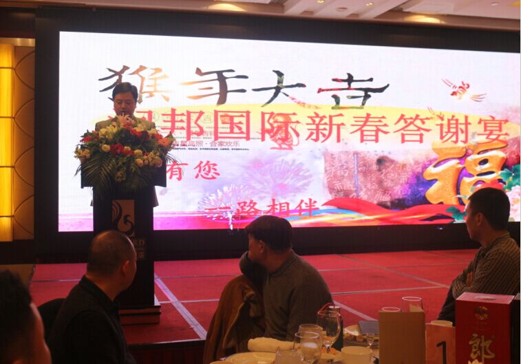 岁月如歌,2015年是不平凡的一年,润邦国际酒店评星复核成功,这对我们来说无疑是更好的鞭策,润邦国际酒店有今天的成就离不开大家,为了感谢大家长期以来的支持,怀着无比兴奋和喜悦的心情,2015年12月30日在酒店20楼开明厅举行“感恩有您,一路相伴”的客户答谢晚宴。 2015年已经落下帷幕,在整个羊年里,酒店行业牛气冲天发展迅猛,一年以来,在大家的大力支持下,润邦取得了很好的成绩。在此,对各界朋友的关心和帮助表示衷心的感谢!答谢宴现场不仅有丰富可口的美食,还有微信红包,微信摇一摇的活动。