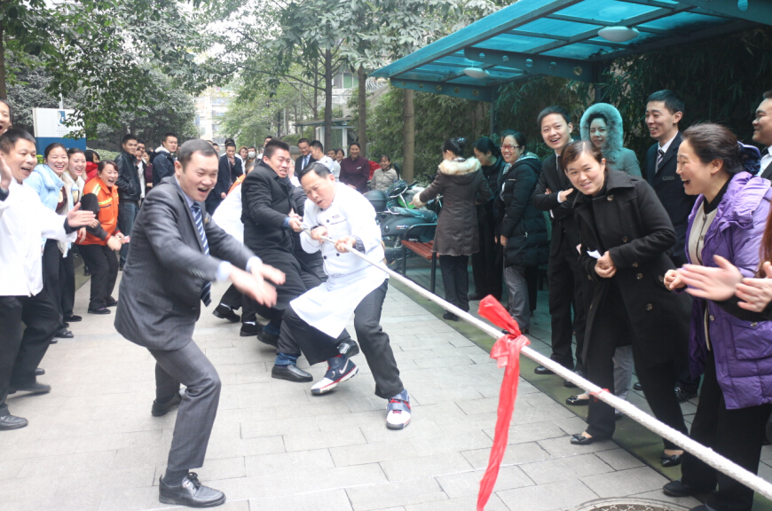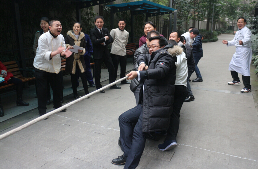2016年1月13日,冬季的寒冷有些刺骨,但润邦国际酒店的西通道旁却是“热火朝天”。又一个冬季里的运动会挑战项目——拔河比赛在欢跃的气氛中“开拔”了。 本次比赛由餐饮部(餐饮服务部、中西厨房、管事部)、行政安管部(安全管理部、行政人事部)、财务工程部(财务部、工程部)、前厅客房部四个队组成,每队派出10人参赛,并且要求至少2名女性参加。比赛前,各队代表通过抽签的形式选择对手进行PK,当比赛哨声一响,队员们双手紧握,拉紧绳索,用尽全力往后拔,经过激励的角逐,最终凭借实力、耐力、体力赛出以下名次: 冠军:行政安管部 亚军:前厅客房部 季军:财务工程部 冬季拔河比赛是润邦国际酒店每年必定举办的员工活动项目之一,不仅是大家团结力的体现,更为了培养每位员工拼搏进取的精神和积极乐观的生活态度。