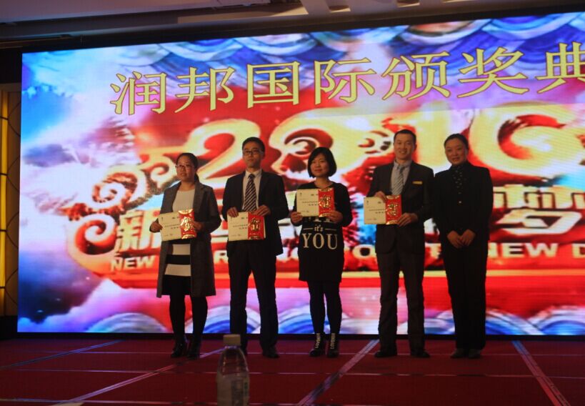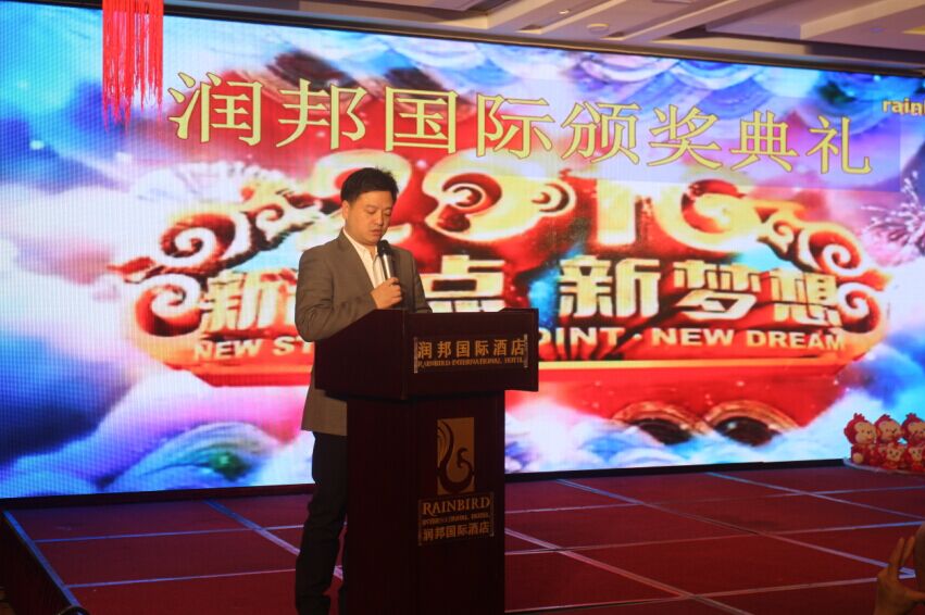 2016年2月4日,立春,下午两点正,阳光明媚,风和日丽,润邦国际酒店“2015年年终总结大会暨2016迎新联欢会”在酒店20楼开明厅隆重举行。 为表彰优秀、激励全员,大会议程首先对酒店2015“年度优秀员工”、“年度优秀管理者”及“年度优秀管理部门”进行了嘉奖,号召全体员工向他们学习,为润邦建设做出自己应有的贡献。酒店总经理黄飚先生发表了热情洋溢的新年贺词,并对全体员工一年的辛苦表示感谢。