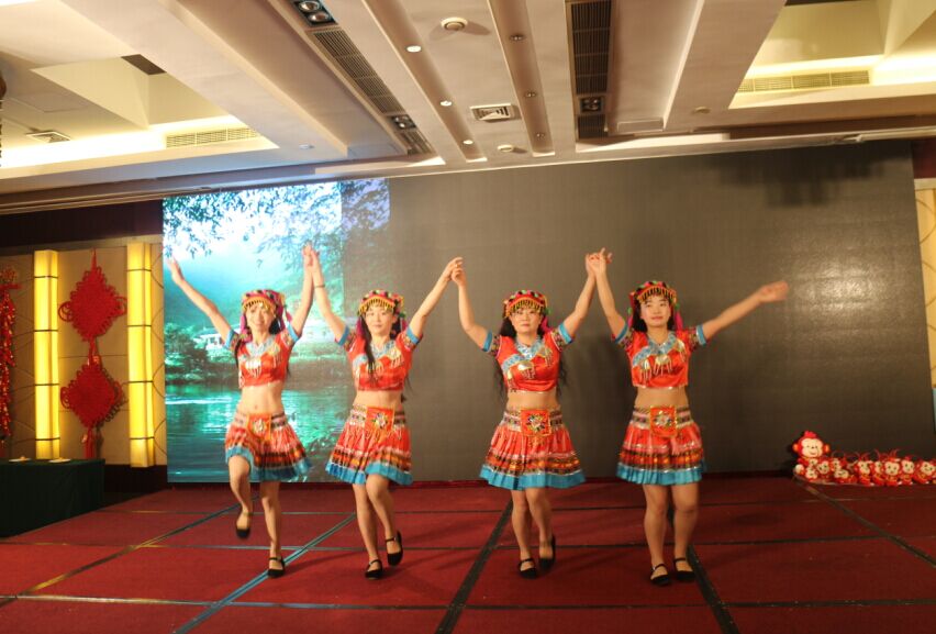 随后,在全体管理人员参与的《你快乐吗》舞蹈中,揭开了联欢会的序幕。酒店各部门的节目演出、趣味游戏、现场抽奖等环节使现场气氛热烈异常。更有由酒店四位高层发起的“抢红包”环节更是火力全开,为整个联欢会推出了一阵阵的高潮。节目期间,由年度优秀管理者组成的评审团为演出节目进行了评分,最终客房部《阿里山的姑娘》《小人舞》分别斩获一、二等奖,行政安管部《雪绒花》获得三等奖。 最后,在所有“年度优秀员工”及管理人员合唱的一首《相亲相爱》歌声中完美落幕。艰辛的2015我们一起走过,崭新的2016我们共同期待。