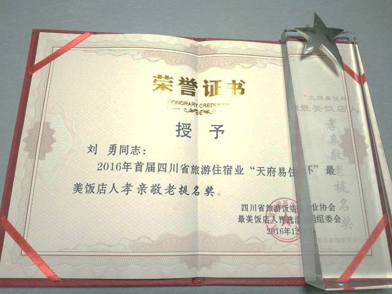 2016年12月30日下午14:00,四川省旅游住宿业首届“天府易住杯”最美饭店人颁奖典礼在成都加州花园酒店举行。历经一个多月的“天府易住杯”最美饭店人评选活动,也正式落下帷幕,润邦国际酒店员工刘勇荣获“孝亲敬老”提名奖。 2016年11月20日起,由四川省旅游发展委员会指导、四川省旅游饭店行业协会主办的四川省旅游住宿业首届“天府易住杯”最美饭店人评选活动开始启动。润邦国际酒店行政人事部刘勇从全省16名送选名单中脱颖而出,以78312的网络投票数获得“孝亲敬老”提名奖,并代表酒店及个人参与了此次颁奖典礼。 刘勇是作为酒店的一名普通员工,他兢兢业业;作为儿子,他做到了百事孝为先,在照顾瘫痪养父的两千多个日日夜夜里,刘勇做到了作为儿子能做的一切。他说:人人都要生老病死,作为女子这都是应有的义务和责任。这不仅是激励我们的典型,更是我们“弘扬最美、学习最美、争当最美”的学习榜样。