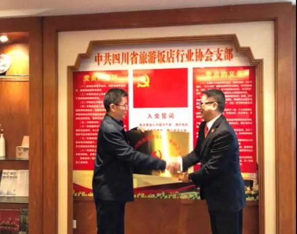 大会中,四川省民政厅社会组织管理局调研员李海鹰同志宣读了中共四川省社会组织第二综合委员会《关于同意成立中共四川省旅游饭店行业协会支部的批复》,并确定由鲍小伟同志担任支部书记。大会上,四川省旅游发展委员会机关党委专职副书记彭志林同志为中共四川省旅游饭店行业协会支部授牌,并表示祝贺。