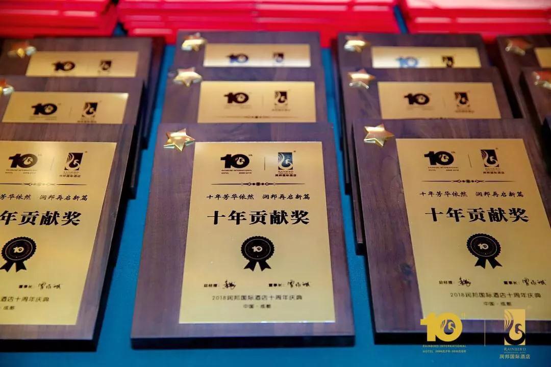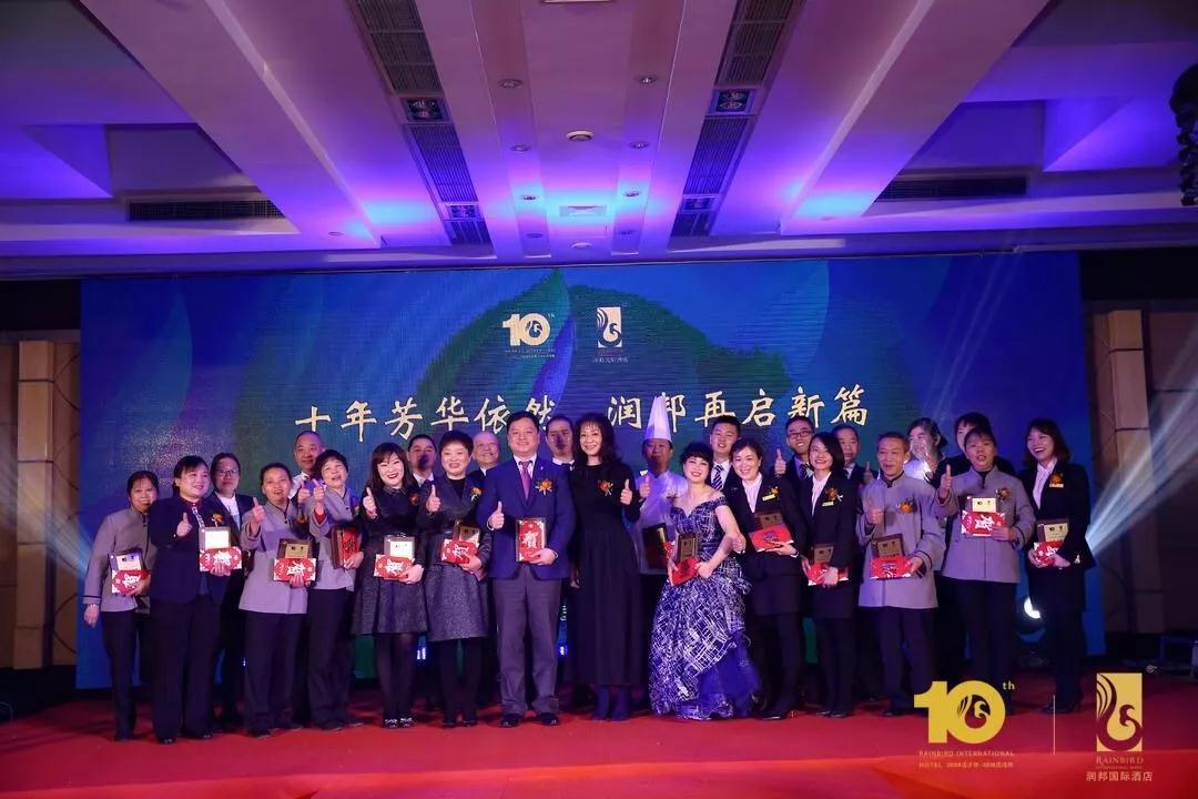 2019年1月23日,戊戌年腊月十八,以“十年芳华依然,润邦再启新篇”为主题的开业十周年庆典在润邦国际酒店隆重举行。 本次庆典除酒店现有在职人员外,特邀业主方成都泰怡实业发展有限公司曾作斌董事长、黄咏梅董事长以及总公司管理团队,十年前一起经历筹建酒店并曾经共事的老同事作为特邀嘉宾“回家”,共同庆祝和见证这富有历史纪念意义的庆典! 活动前,酒店员工作为嘉宾入场前,将事先准备好《写给未来十年的一封信》投递到特别准备的邮筒内,把对企业及个人未来十年的期许与祝福寄往2028年。 庆典开始前,成都润邦国际酒店黄飚总经理、成都泰怡实业发展有限公司曾作斌董事长,并特邀十年前润邦筹建时的策划师陈航先生分别为酒店十周年庆典致辞! 本次庆典分为三个篇章进行: 上篇 念念不忘,必有回响 现场嘉宾与酒店共同追忆往昔,回顾润邦所经历的十年历程。润邦在试营业期间经历了512大地震,抗震救灾期间接待了各省市赴川援建人员,为其提供了住宿,餐饮等一系列的后勤支持和保障。主持人现场分享上海援建者张先生发来的一封信,张先生因工作原因不能亲临现场,信中表达了对润邦在当年援建中为他们提供了一个良好休息环境的感谢,在润邦十周年之际,祝润邦十周岁生日快乐。这份恩情纽带也将会继续延续,我们都将会铭记在心。正如本次庆典的第一篇主题一样,念念不忘,必有回响! 酒店十年前筹备开业之时,作为第3位入职润邦的高兰女士代表所有受邀嘉宾致辞,并为润邦带来惊喜,将亲笔绘制的《花开富贵》赠予酒店作为十周年的纪念礼物,寓意酒店吉祥、富贵。同时,黄飚总经理投送给未来十年的最后一封信并现场封存。 中篇 桃之夭夭,灼灼其华 回顾过往,从2008年至2018年,累累硕果。有这样一群员工奋力深耕十年,陪伴润邦走过每一个盈盈冬夏,润邦的每一步成长都离不开他们的努力心血和辛勤汗水。十周年庆典现场,为辛苦付出了十年的员工颁发了“十年贡献奖”,总结2018,颁发了“2018年度优秀员工”“2018年度优秀管理者”“2018年度优秀部门”奖,同时,对获得省市行业主管部门及协会先进的员工,酒店给予特别奖励。 下篇 润物可期,邦您所想 在庆典的第三个篇章现场,首次发布了2019年润邦宣传短片。并由酒店客房、工程、安管以及餐饮部5名基层员工组成的超模团队优雅呈现,为大家带来了一场精彩的T台秀!展现他们为酒店服务工作辛勤劳作场景的同时,也有华丽蜕变、惊艳亮相的一面。 庆典最后,所有演职人员及管理人员一起合唱《曾经的你》,共同期待下一个十年,希望有你也有我,并祝愿润邦10周岁生日快乐!