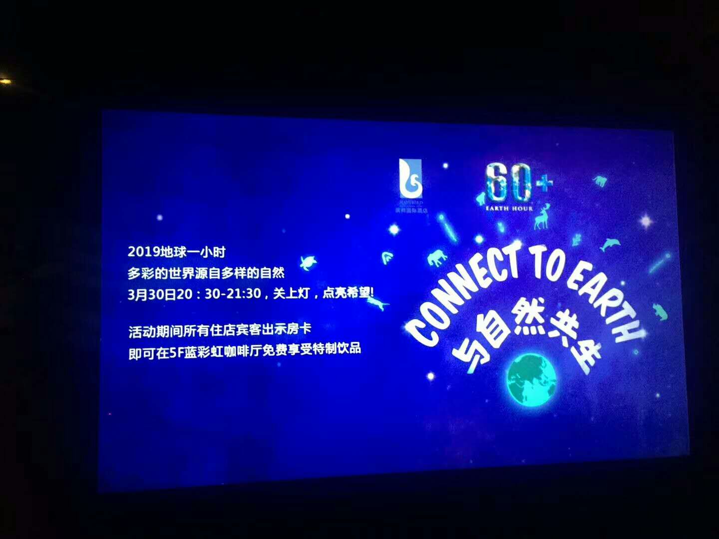 2019年是“地球一小时”进入中国的第十一年,也是润邦国际酒店连续加入此项公益活动的第十一年。2019年,秉承“与自然共生(connect to earth)”的活动主题,酒店将继续参加“地球一小时”活动,与社会各界人士共同倡导和激发人们对保护地球的责任感。并在活动前一天,在客房、餐厅及酒店大堂区域摆放了宣传信,呼吁宾客共同参与“地球一小时”活动。酒店还特别推出3月30日晚20:30-21:30期间住店宾客出示房卡,即可获赠五楼蓝彩虹咖啡厅特调鸡尾酒与茶品的参与性活动。 2019年3月30日晚20:30,各部门按照预先拟定方案,依照惯例工程部及各部门同时拉闸熄灯。酒店内各营业区域烛光开始点亮,继续用烛光代替灯光,部分宾客“放下手机,乐活生活”,来到酒店五楼蓝彩虹咖啡厅享受特调鸡尾酒与茶品。 今年的“地球一小时”活动,一如既往地得到了来往宾客的积极参与及支持,纷纷与酒店一起从行动上践行“与自然共生”的责任与义务。