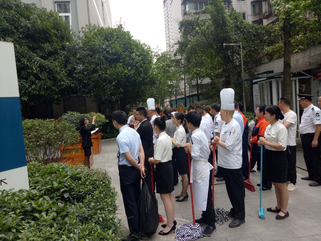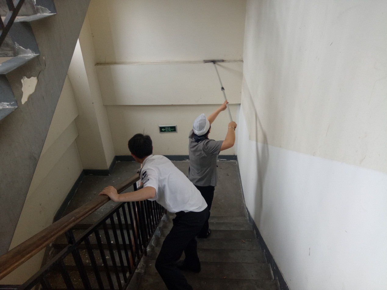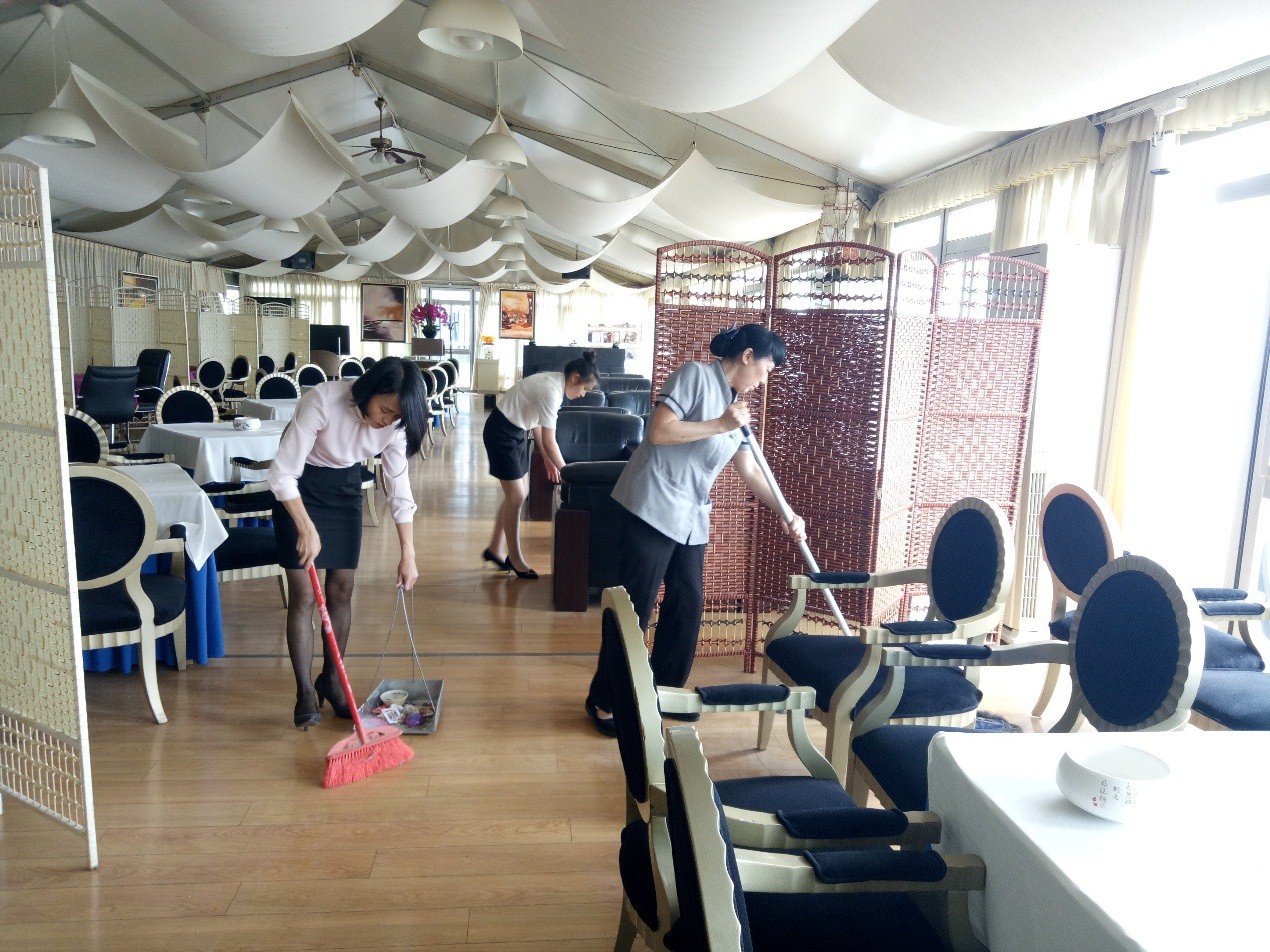自2015年4月29日开始,润邦国际酒店有了属于我们的自己“劳动日”。2019年4月28日已经是酒店的第五个劳动日,当天下午13:00各部门劳动代表集合于酒店西通道,由行政人事部根据提前安排好的人员及卫生清洁工具迅速分配开来。 13:30劳动日大扫除正式开始,今年大扫除划分区域有刚经过蜕变,正在开荒中的贵宾楼层、在酒店装修期间尘土飞扬的1/2/3/4号消防楼梯及酒店最高处的屋顶大茶房。抹尘、拖地、扫灰、提水、搬运,大家对任何一个角落都不放过,经过2个多小时拖把、扫把及欢声笑语的交错“战斗”,各区域已再现整洁。 经历了一翻体力劳动,大家虽已身心疲惫,但却充满了成就感,纷纷表示:看着自己的劳动成果,心里很美!