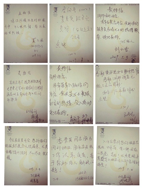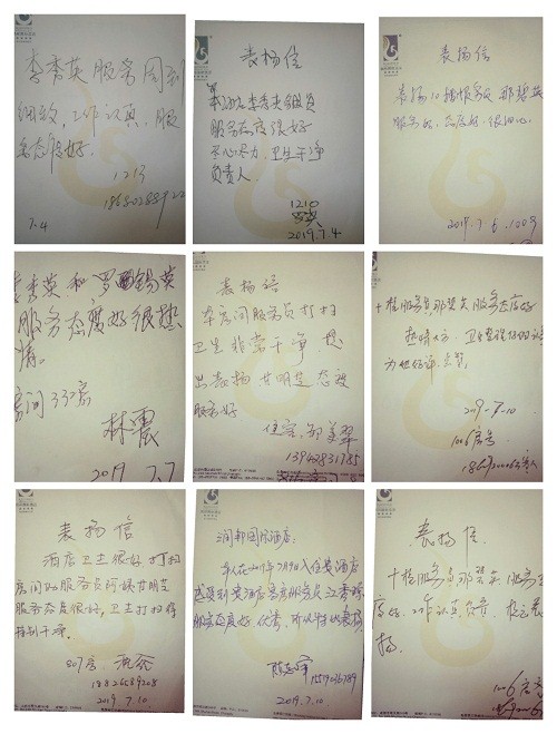 2019年8月,成都润邦国际酒店行政人事部收集到了来自酒店各部门的书面表扬信共计62封,刷新了近11年来月度表扬信的历史新高。 自2018年出台《网络点评奖惩制度》以来,酒店各部门的表扬信接踵而来,表扬的内容也是丰富多彩。今年8月更是以每日2封的平均量刷新着历史记录,有的对餐饮部员工主动热情的服务意识进行赞扬;有的被客房大姐不管房间如何脏乱,仍耐心打扫的行为所感动;有的对安保人员的认真负责表示感谢;更有对及时解决宾客燃眉之急的前厅同事进行表扬••• 除了表扬信外,网络实名5分好评更是不能少。不管是书面表扬的还是网络5分好评的,酒店均以现金红包的形式对同事们进行了奖励,以此鼓励大家提供更热情周到的服务,争取更多的实名好评,提升宾客满意度。