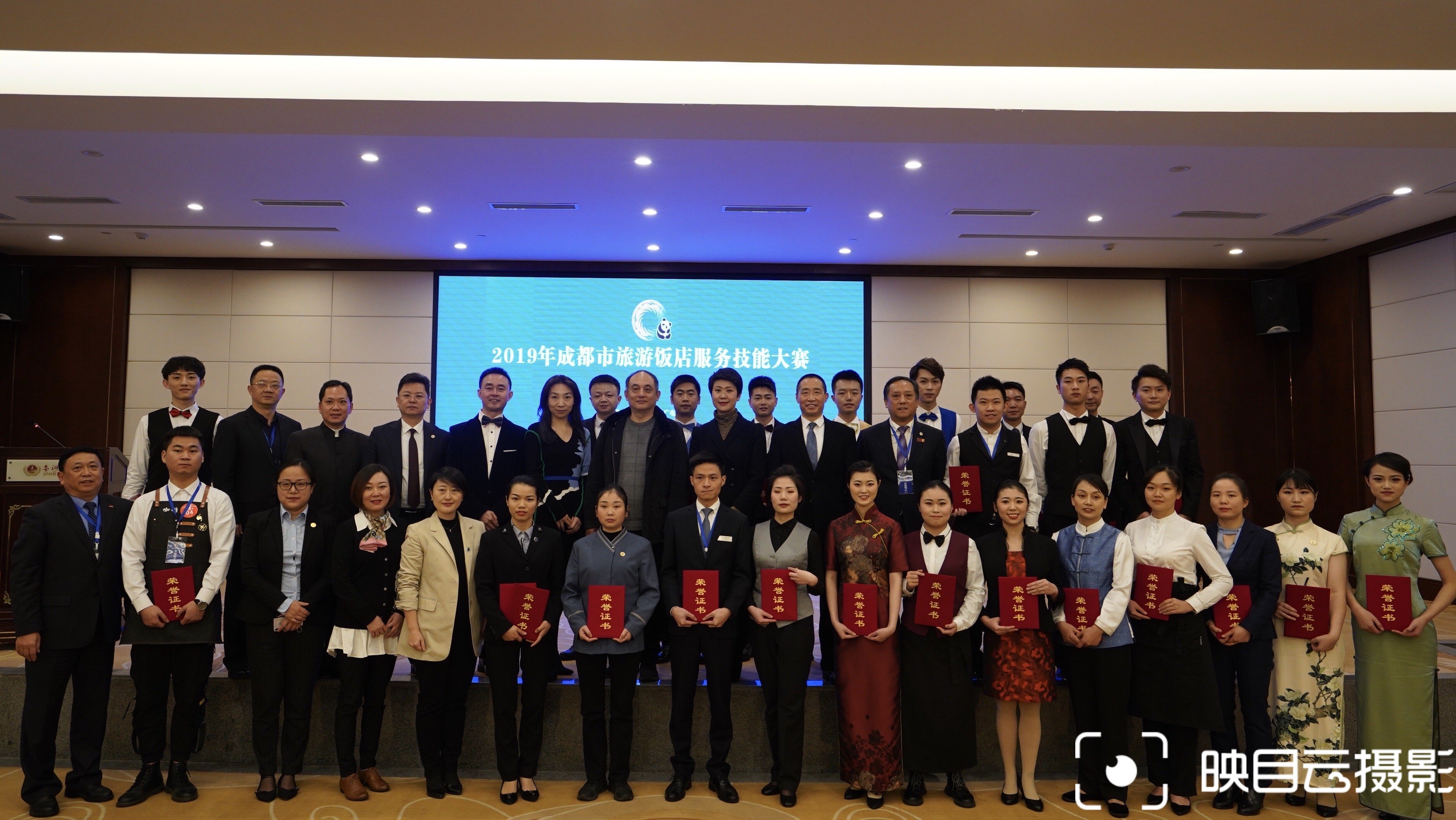 12月17日上午,2019年成都市旅游饭店服务技能大赛闭幕式暨颁奖典礼在锦河宾馆举行,成都市文化广电旅游局副局长黄大超,市场管理处副处长杨晓玲,龚小茜,调研员罗勇,成都旅游住宿业协会会长安茂成,副会长暨大赛总裁判长李原,副会长陈伟,高春玲,副总裁判长黎万国,区市县行管领导和协会部分领导,酒店总经理以及裁判员与选手共200多人出席,现场为选手与单位颁发了奖项。本次大赛设五个常规项目和工装展示的集体项目,获奖选手有:中式铺床一等奖:金玉阳光酒店 于燕;咖啡拉花一等奖:金玉阳光酒店 王超;中餐宴会摆台一等奖:金河宾馆 廖明会;西餐宴会摆台一等奖:京川宾馆 张恒;鸡尾酒调制一等奖:岷山饭店 杨琦;青羊区,成华区与都江堰市分获团体一,二,三等奖。 此次大赛首次引入多方新媒体宣传,采取看度新闻视频+比赛全过程直播+CDTV晚间新闻专项报道+抖音等多家网站宣传的方式,并特别开通好住生活的微信平台点赞,最终得出累计达63万次访问,超过15万的投票数,评出10名最具人气奖,极大的扩展了技能大赛的社会知晓度。本次大赛也也吸引部分国际品牌酒店参与,大大彰显了成都“酒店人”的工匠精神和优秀形象。