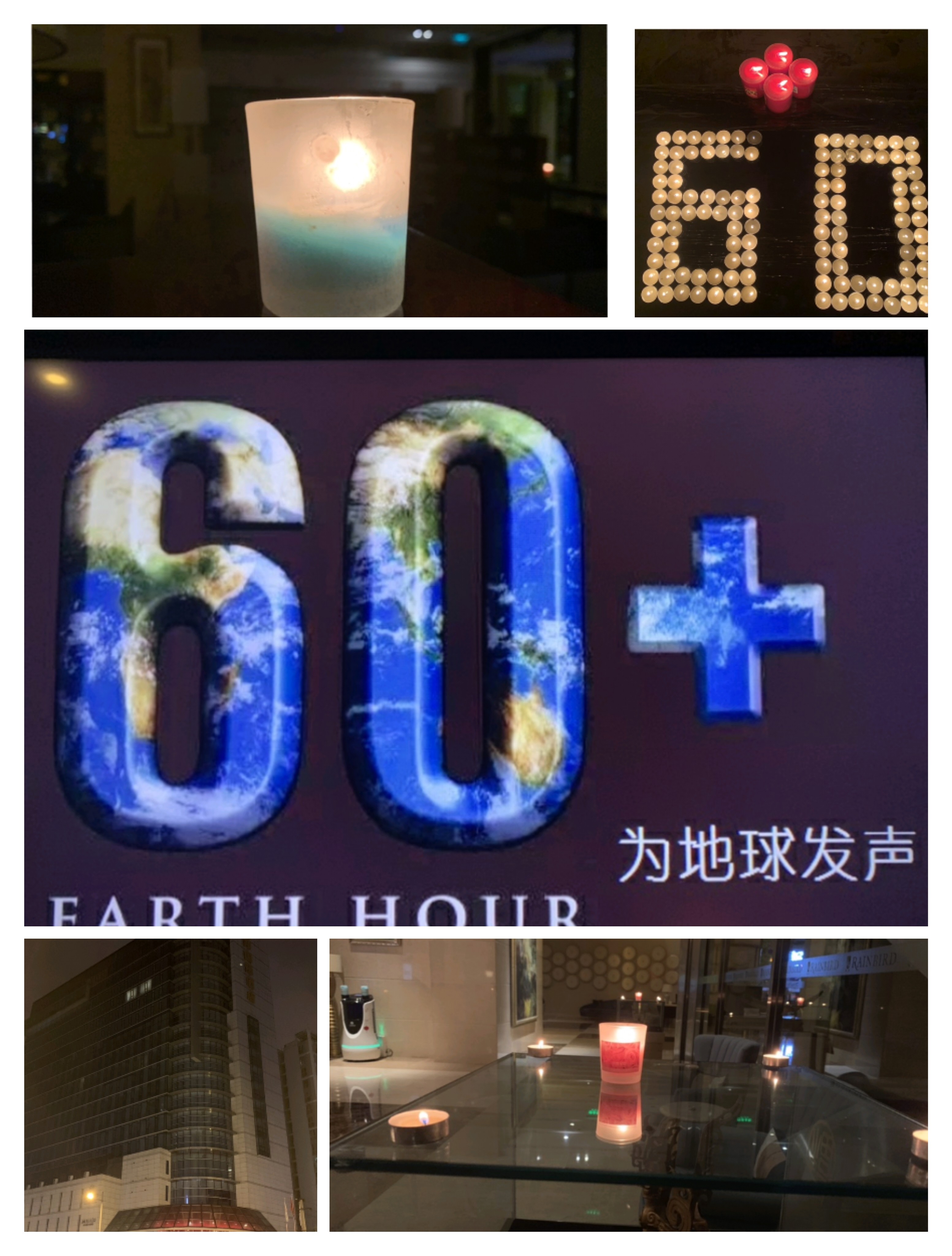 2020年3月28日,是“地球一小时”进入中国的第十二年,也是润邦国际酒店连续加入此项公益活动的第十二年。今年的地球一小时活动以“为地球发声”为主题进行。 当日晚间20:20,酒店大堂、餐厅等区域均已完成了地球一小时熄灯前的准备工作。20:30各区域同时熄灯,外围灯光也在此刻准时关闭,大大小小、五颜六色的蜡烛点亮起来,用行动爱护地球。 虽然受疫情影响,当晚参与现场活动的宾客很少,但我们仍要隔空呼吁:用烛光代替灯光,还自然一小时,还地球一小时。